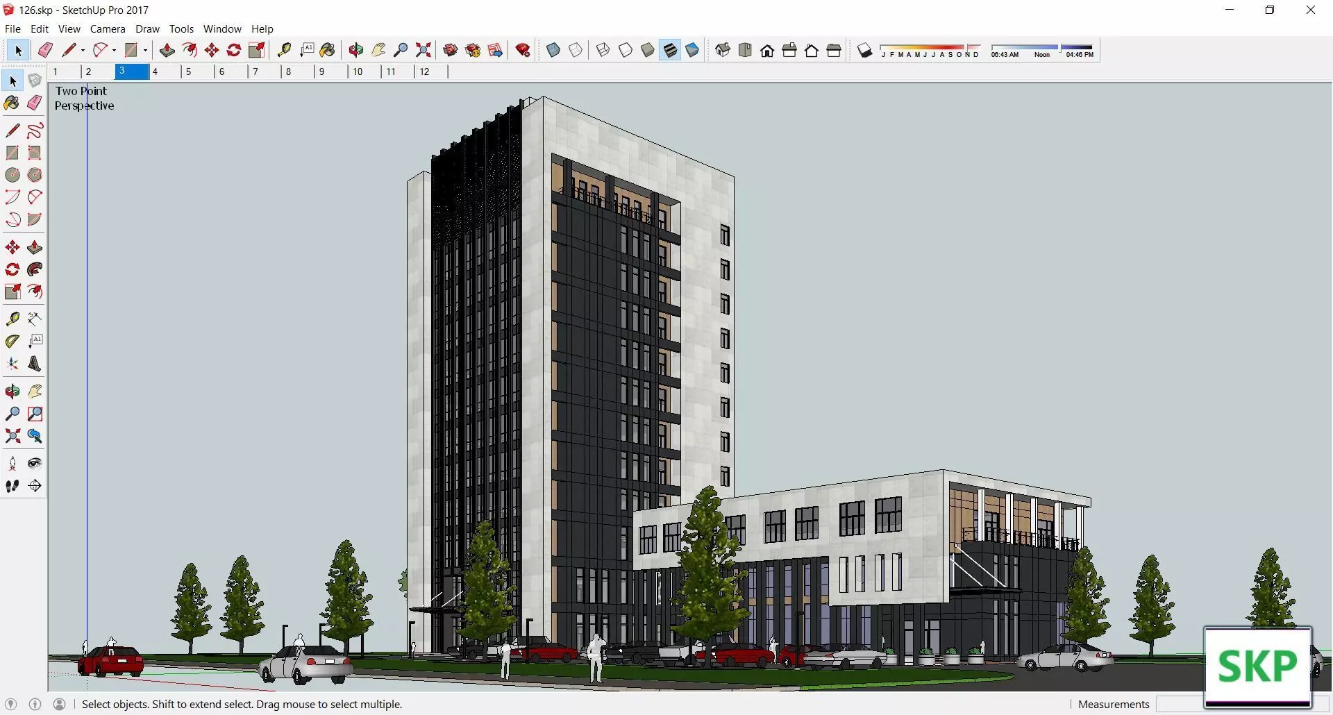The model has material settings that define how surfaces look (color, shine, transparency, etc.).