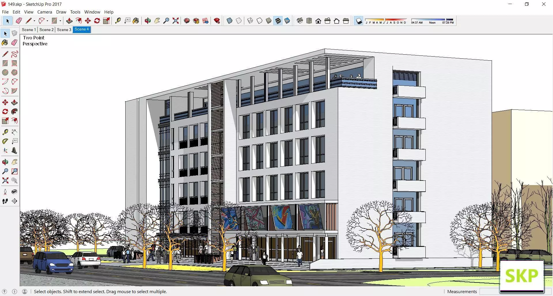 The model has material settings that define how surfaces look (color, shine, transparency, etc.).