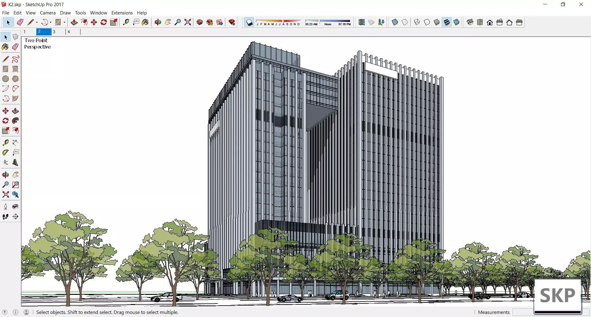 The model has material settings that define how surfaces look (color, shine, transparency, etc.).