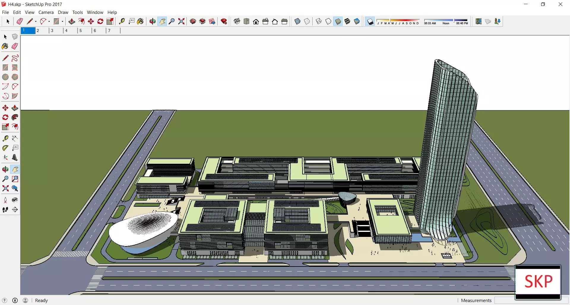 The model has material settings that define how surfaces look (color, shine, transparency, etc.).