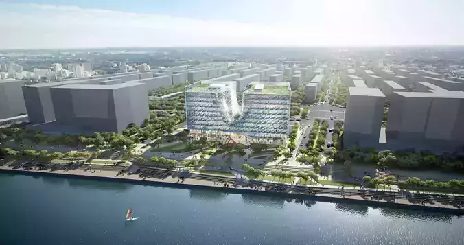 Waterfront U-Shaped Glass Office Complex with Central Atrium 3D model