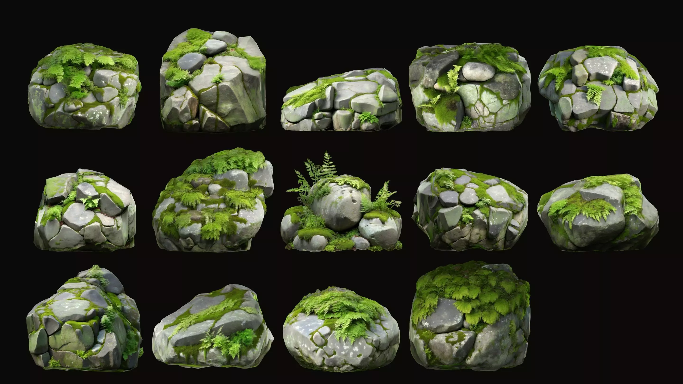 free sample: https://www.cgtrader.com/free-3d-models/exterior/other/3-mossy-green-rocks-sample-pack