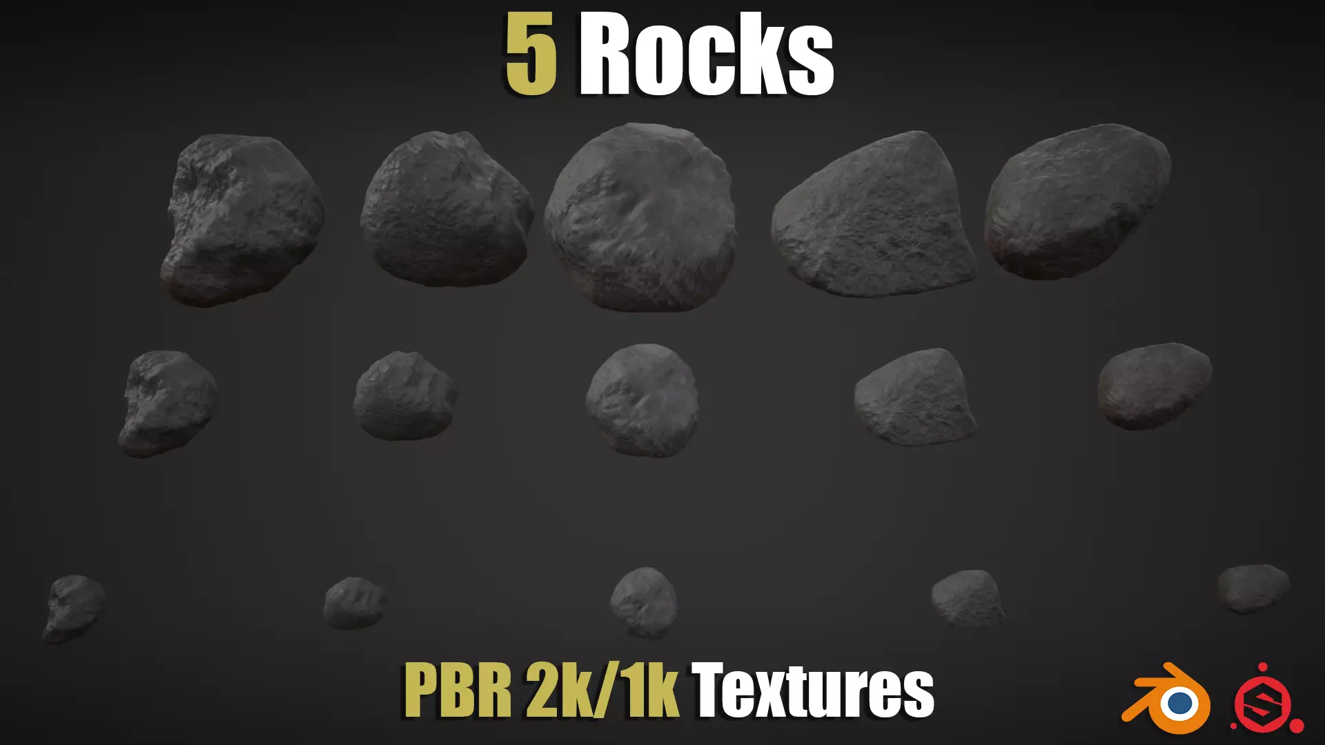 5 Rocks in 3 Different sizes (not level of details), each Rock has about 4000 faces and 4000 vertices.