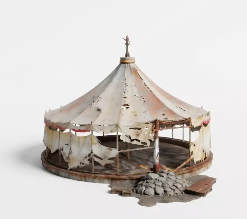 Tags Abandoned Circus Arena Ruin Post-Apocalyptic Tattered Distressed Horror Wasteland 3DModel GameAsset Diorama Weathered