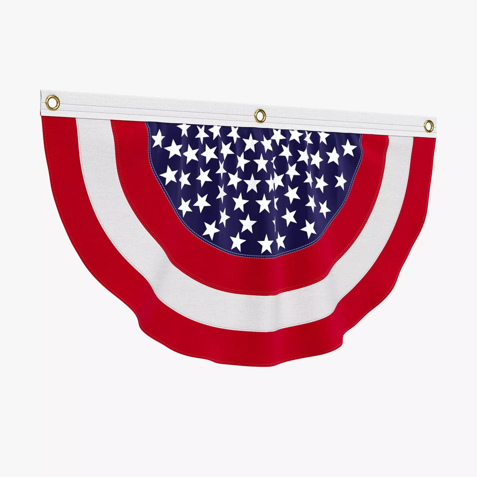 The American Flag Patriotic Bunting is a 3D model of a pleated semi-circle flag representing the United States. It is made of pleated fabric and can be attached to various surfaces such as a string, rope, wall, or special plank.