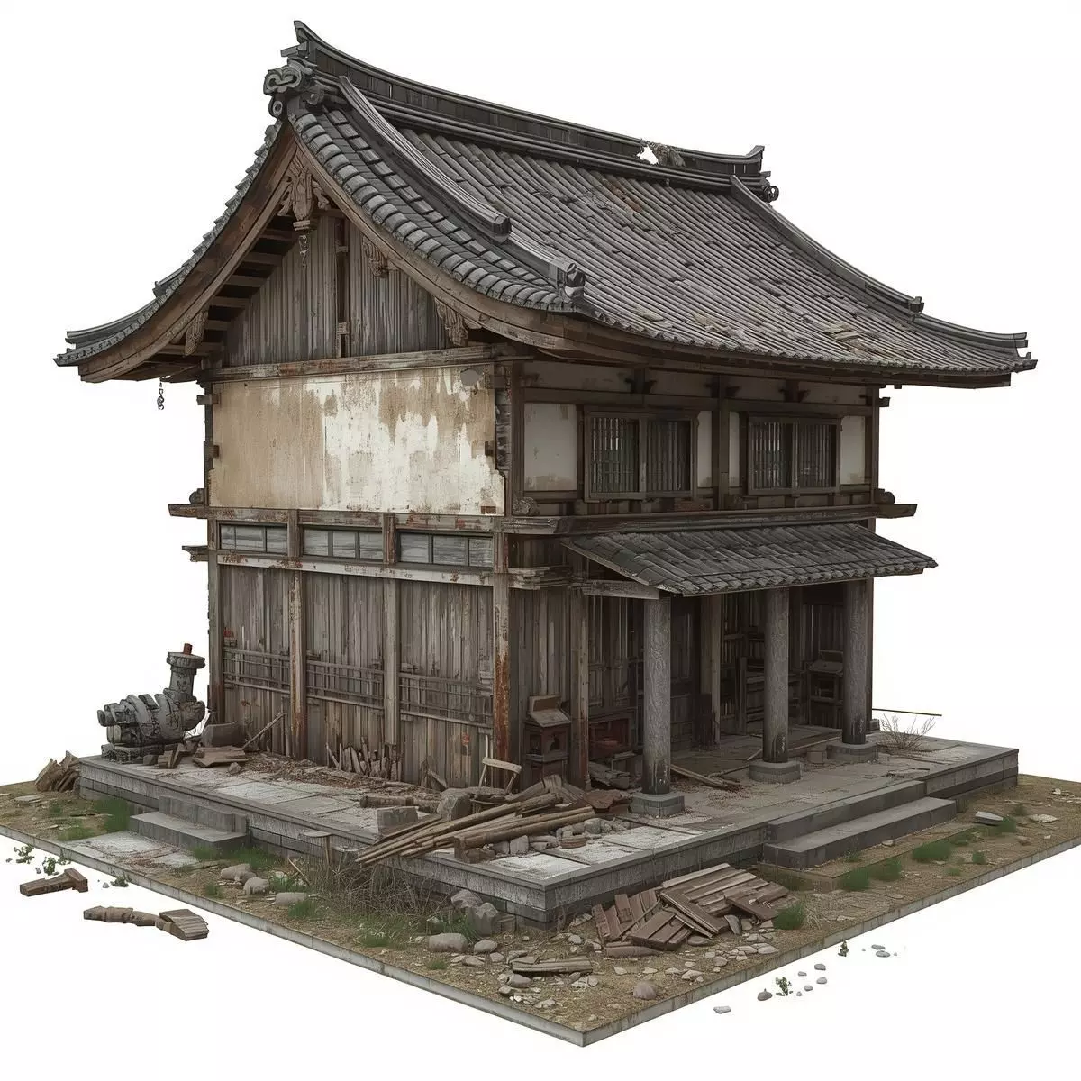 Key FeaturesTraditional Oriental Aesthetic: A meticulously designed architectural model that balances authentic cultural design with a compelling narrative of decay.