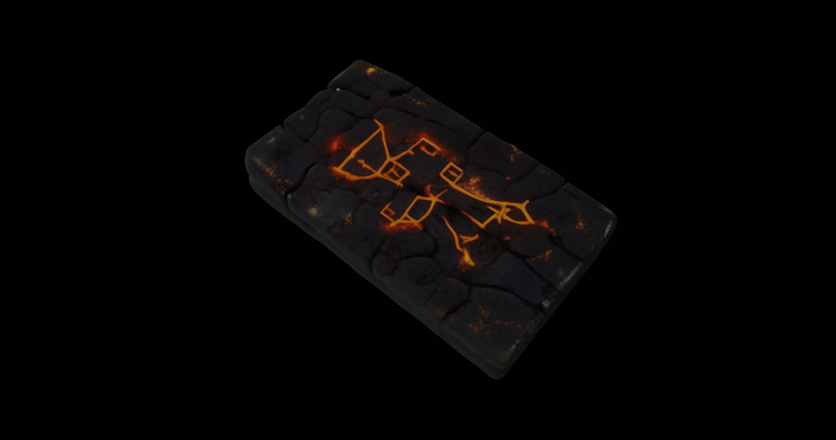 This meticulously crafted 3D model showcases an ancient stone tablet, featuring intricate glowing runes embedded within its cracked, volcanic rock surface. The dark, aged texture of the stone gives it an ominous and mystical feel, as if it has been preserved through centuries of time, holding untold secrets within its runic inscriptions. The deep fissures and rough, weathered edges enhance its realism, making it a perfect asset for fantasy, adventure, or historical-themed projects.The central glowing runes pulsate with a fiery-orange hue, illuminating the tablet with an otherworldly energy. The intricate symbols appear to be part of a lost language or magical incantation, radiating a mystical aura that suggests it may have once been used in ancient rituals or as a key to unlocking forbidden knowledge. The emissive properties of the glowing lines create a striking contrast against the dark, rugged stone, enhancing its presence in dimly lit environments.Ideal for game development, cinematic visual effects, and virtual reality applications, this model is designed with high-quality details and optimized topology. Whether used as a relic of an ancient civilization, a magical artifact, or a central piece in an adventure storyline, this stone tablet will add depth and intrigue to any digital environment.This model is available for download in .gmb format with textures included, as well as in .fbx format for seamless integration into various 3D software and game engines.