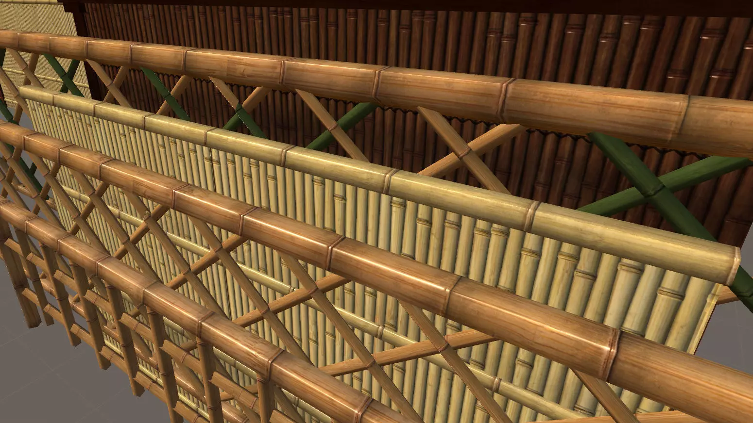 Bamboo japanese fence Low-poly 3D model