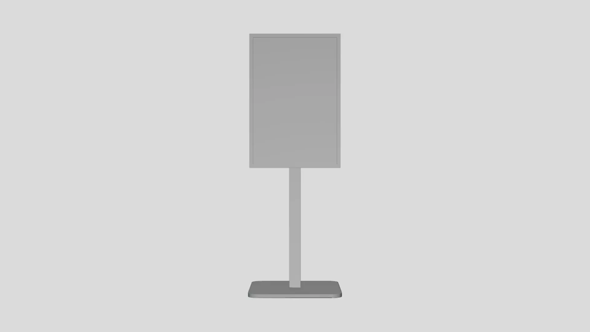 A professional and clean display stand model suitable for promotional mockups, product presentations, or advertising exhibitions. The stand features a vertical pole and a horizontal display board. Perfect for adding branding graphics, signs, or information posters in visual scenes. Lightweight mesh, clean topology, and UV unwrapped for easy texturing or stylization.