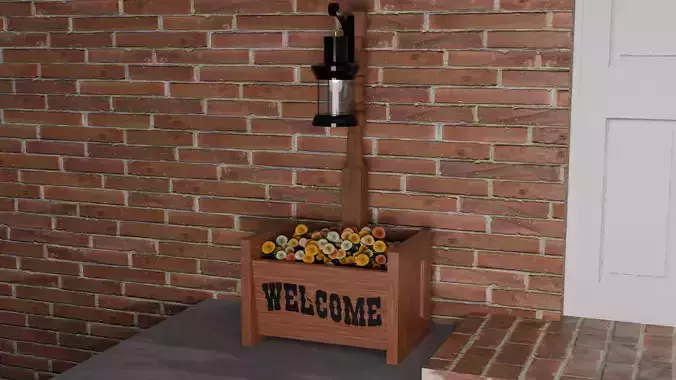 Bed Post Front Door Welcome Sign Planter Low-poly 3D model