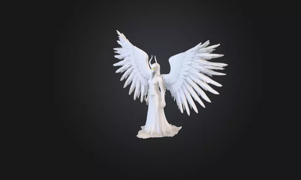 A terrifying 3D interpretation of a Biblically Accurate Seraphim, designed to resemble an eldritch celestial being beyond human comprehension. This model features six vast wings—two shielding its radiant face, two covering its feet, and two carrying it aloft—each feather etched with countless, shifting eyes that gaze in every direction.