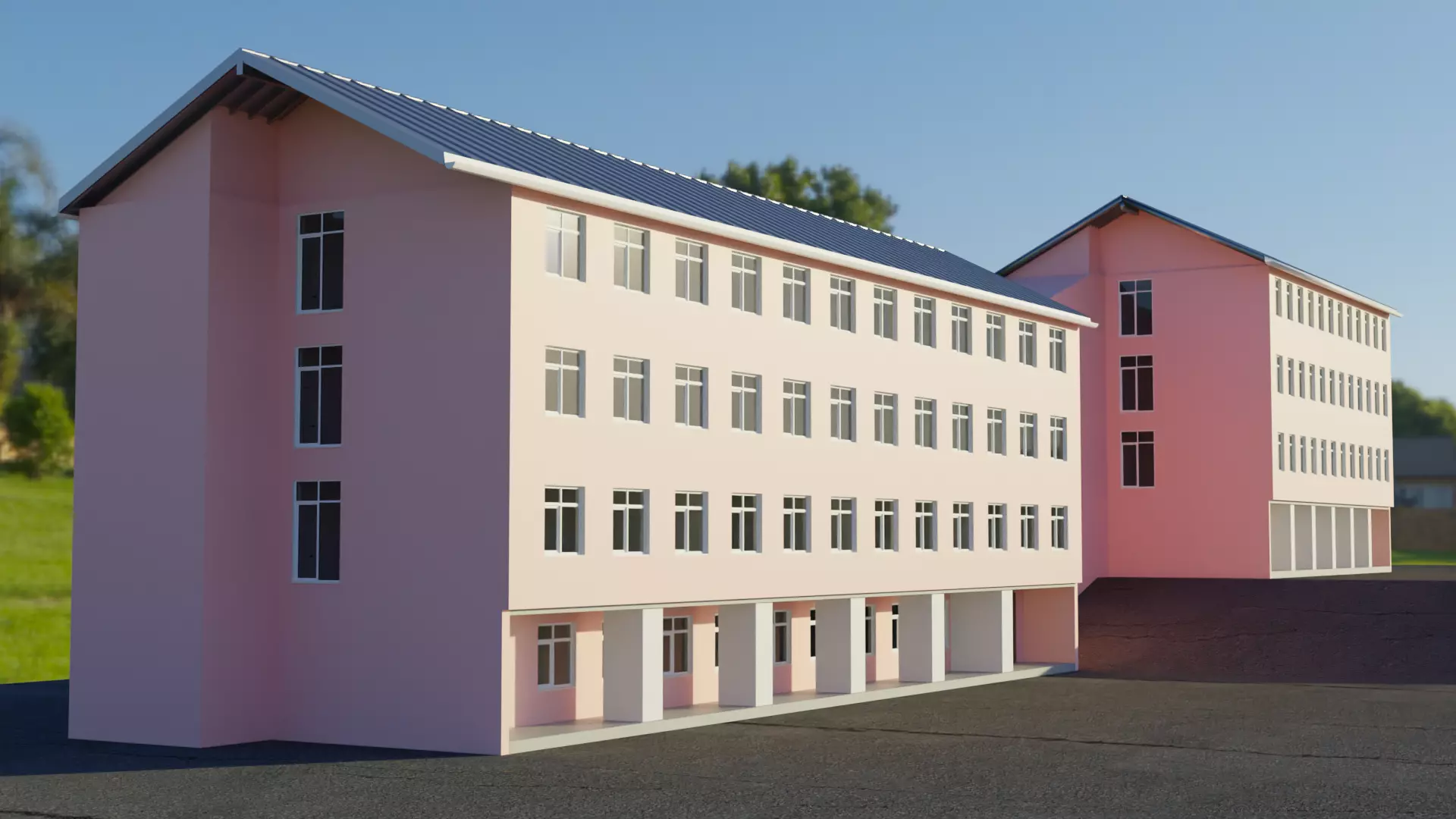 Twin Buldings of which one of them comes with interior. Main building has the interior and is the larger one that is on the lest side in the first photo. 4 floors on each building. In the main building, the ground floor has one canteen area and a long hall. In the first floor, there are 7 larger classes and 1 smal utility room. the 2nd and the 3rd floor has the same plan which includes ony 7 larger rooms. In the main building, all doors and windows are seperate and ready for animation. All doors are tested in Unreal Engine 4 for animation and it worked great with very basic blueprints in a prototype game. The street ground mesh and the HDRI come with the file including all the textures used and the blend file. The building is also available without doors so it would be easy to animate doors later on. Please, feel free to contact for additional information. Made in Blender.