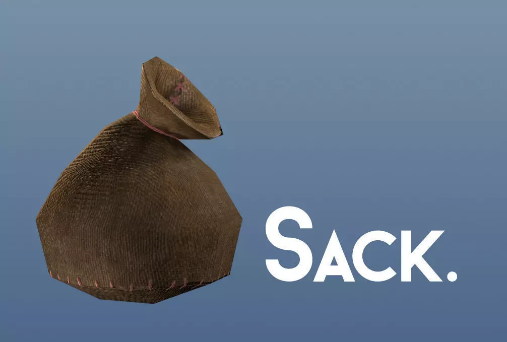 A History of SacksCGTrader recommends I write many more words in this description, even though there is not very much to say about a simple little sack. So, here is a brief history of sacks.Fabric was invented, created using a spinning wheel and loom. The most basic fabric was used in the creation of sacks, which were used for storage of produce, grain, and other such miscellanea.Now you know.