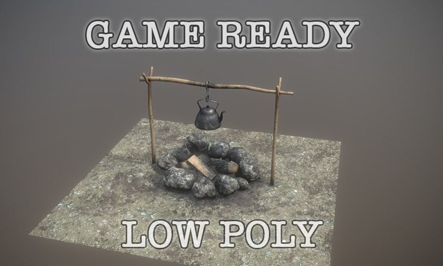 Camping Fireplace low-poly game ready Low-poly 3D model