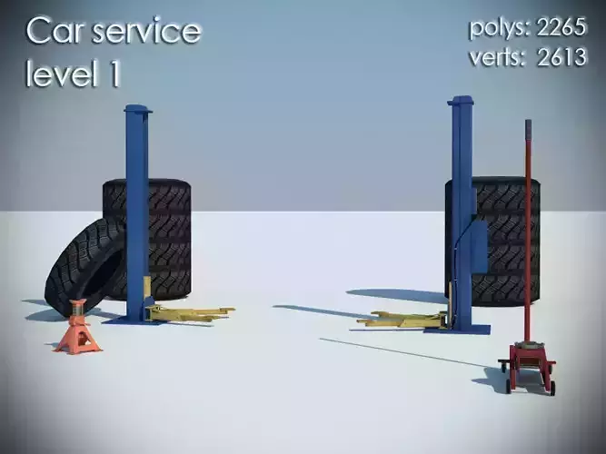Car service level 1 lowpoly 3D model. Vray, scanline, multiple import formats.