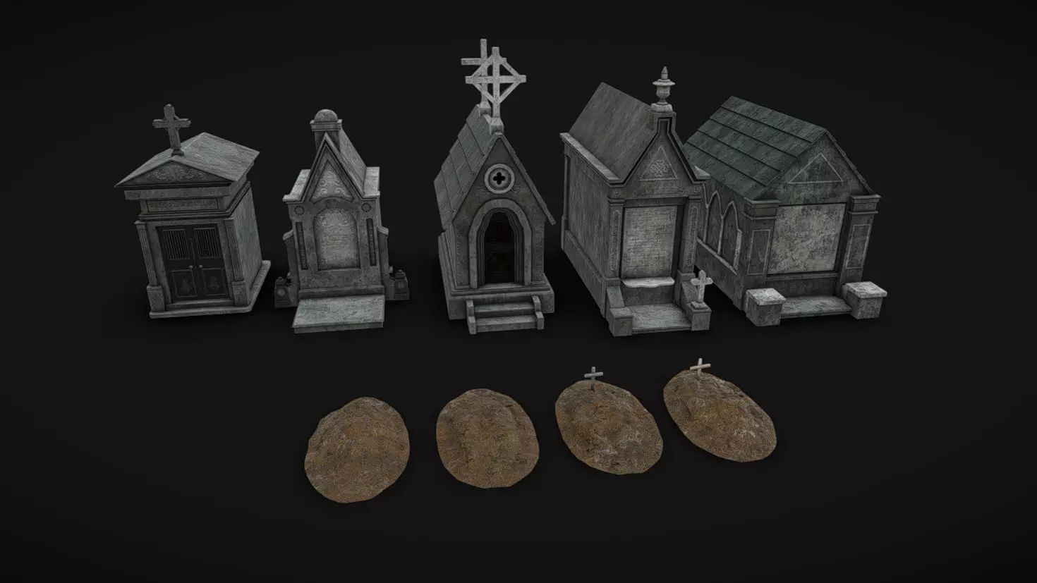 Cemetery Crypts Low-poly 3D model