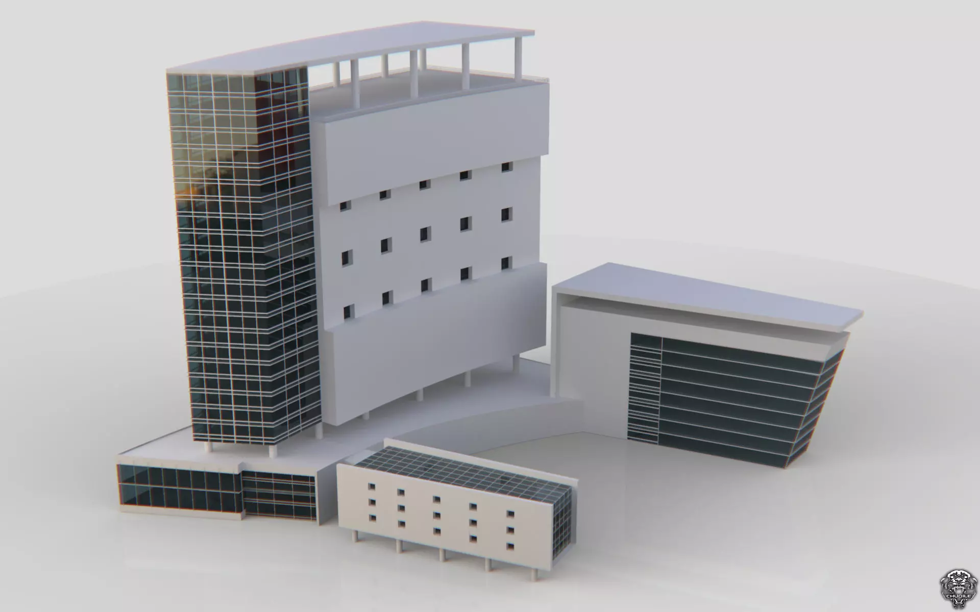 The model has material settings that define how surfaces look (color, shine, transparency, etc.).