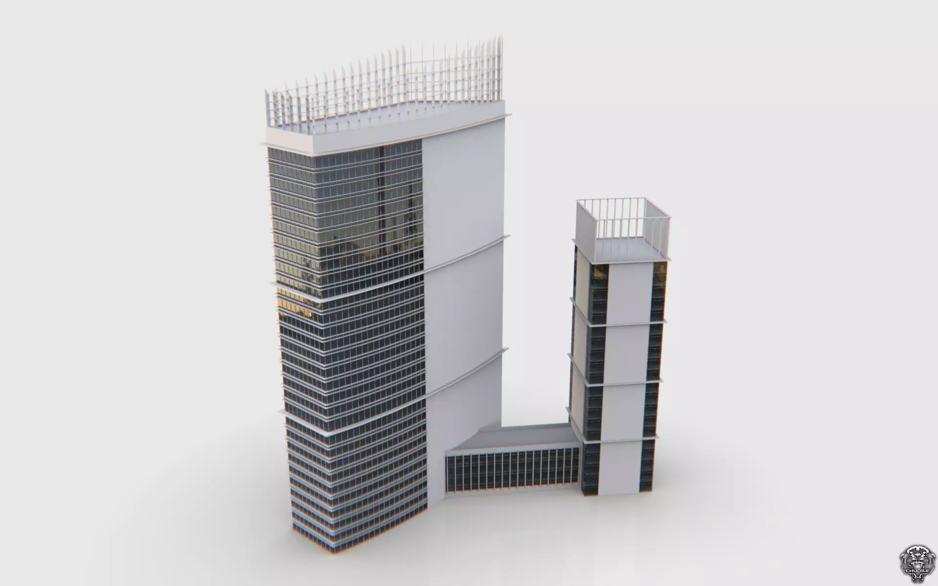 The model has material settings that define how surfaces look (color, shine, transparency, etc.).