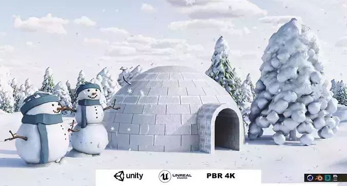 - This Model Summery Details... - - Model Name - Christmas 3D Pack ( Snowhouse/2 Trees/2Snowmans/Snow)