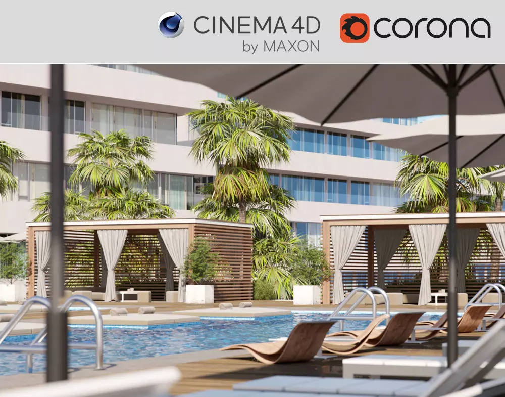 Corona - C4D Scene files - Miami Holiday Resort (Exterior CGI)