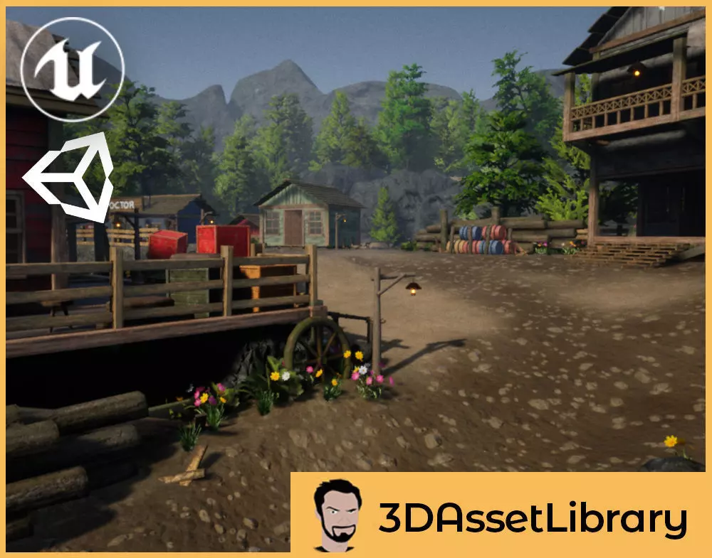 Country town for unreal engine with 100+ unique assets for Unreal Engine 4.20+. Most assets can have paint, moss or dirt turned on or off and the colors adjusted to help you achieve the setting you want!