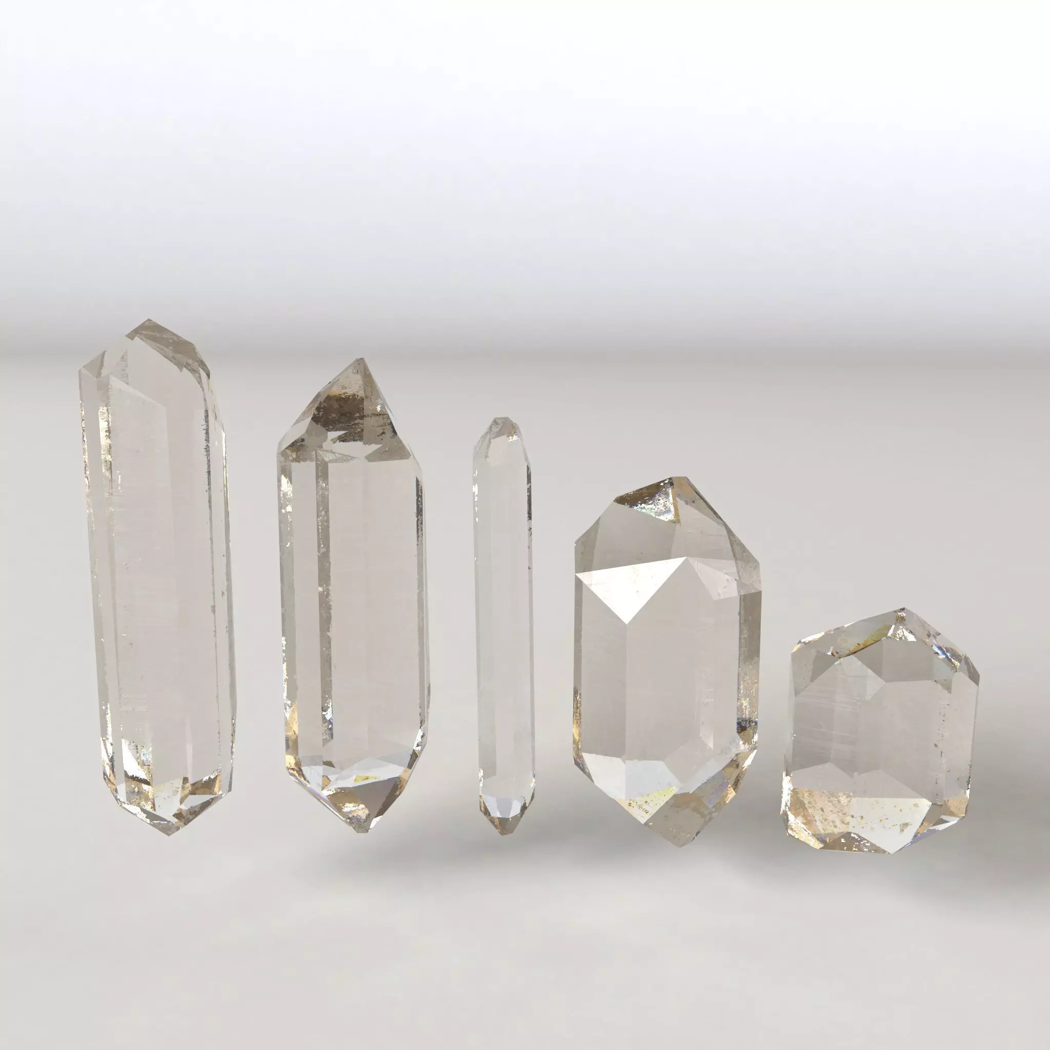 Crystal 5 types Low-poly 3D model