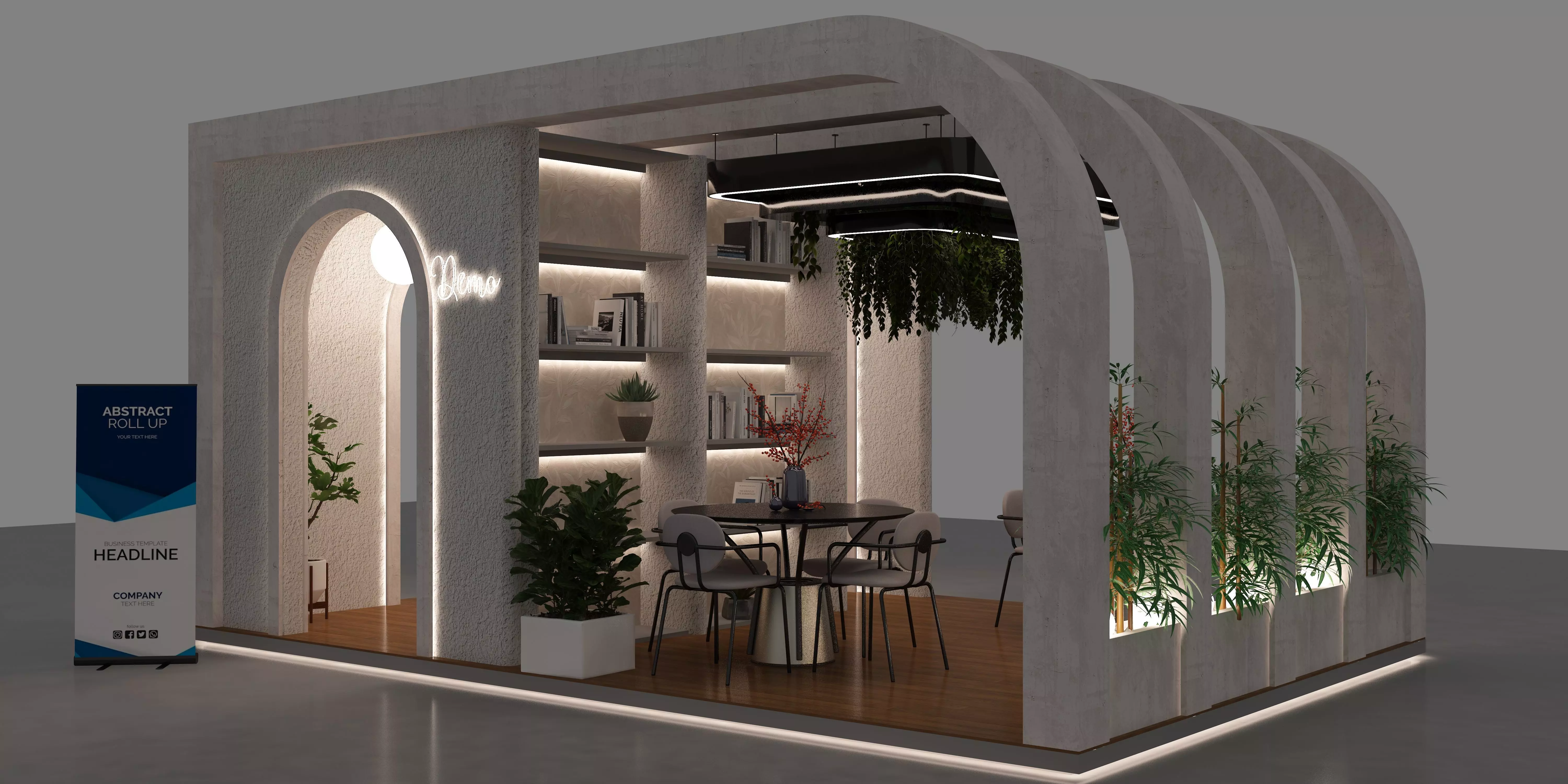 This Demo Exhibition Stall 3D model is a professionally designed, fully textured interior scene created for exhibition, trade show, and brand showcase visualizations. The model features a modern, spacious layout (20 ft x 15 ft) with a clean and professional appearance, making it suitable for a wide range of industries and corporate presentations.