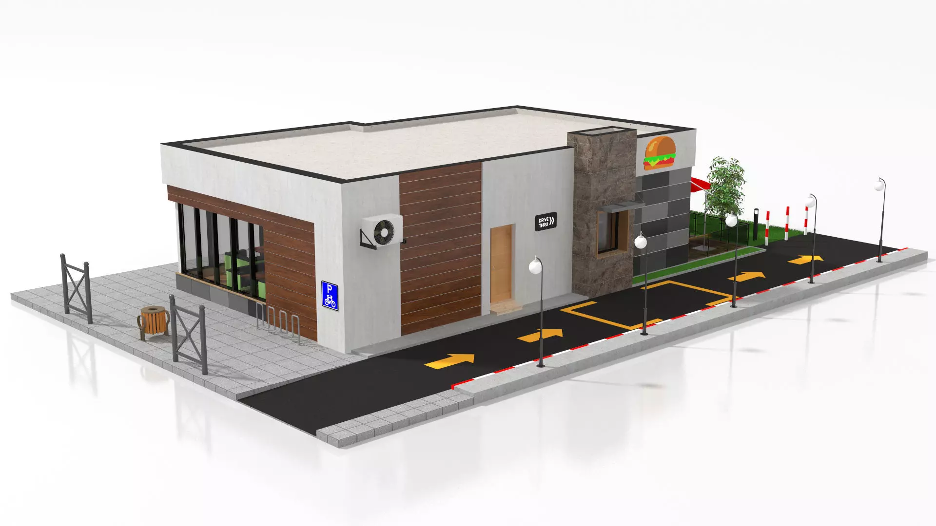 Detailed 3D model of a Drive-Thru Fast Food Restaurant