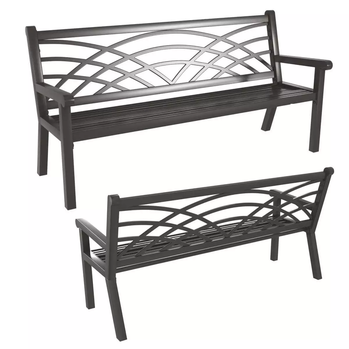 Du mor metal street bench in dark grey finishangled back, wave shape seat, garden, park, yard, street seating, durable, weather resist,size 94x26x35 H inch15638 polys