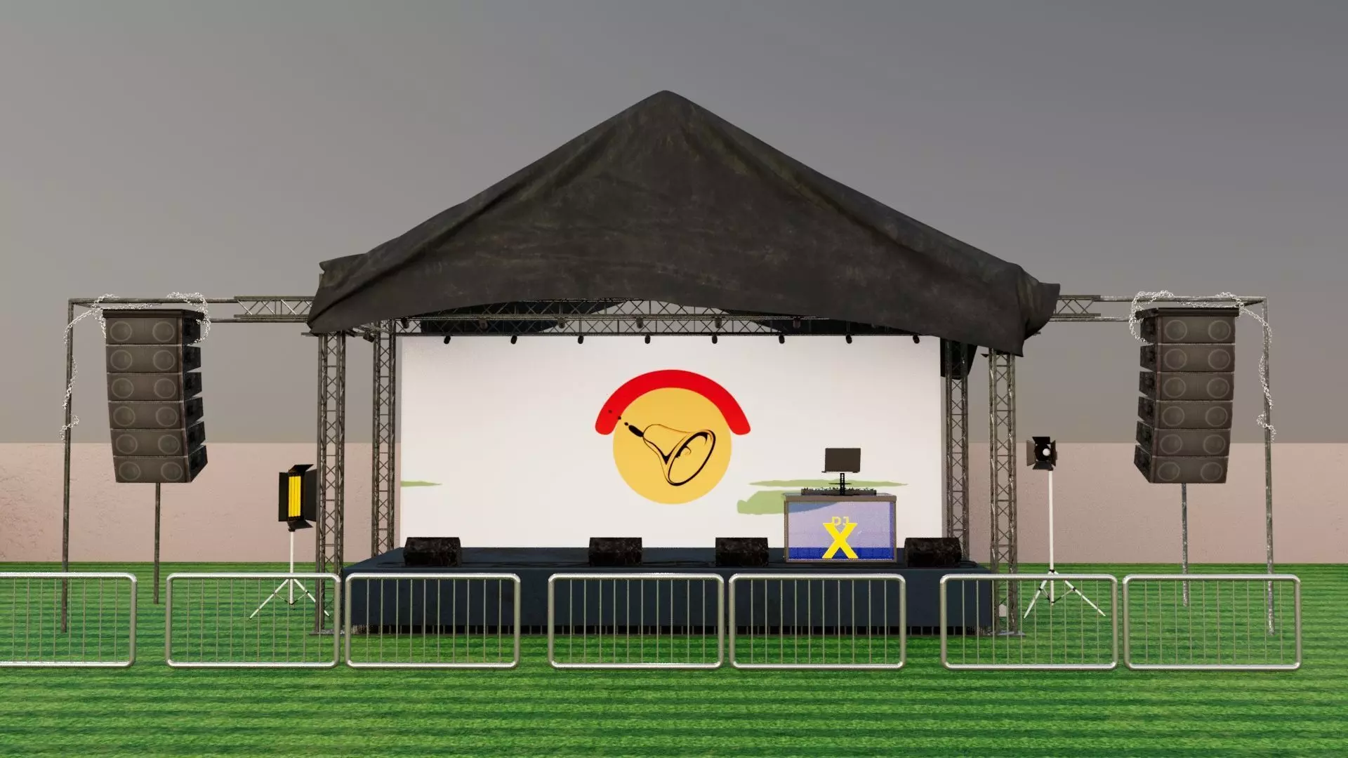I present to you a prepared stage for outside occasions, a fully designed park for events and DJ assets. The stage measures 7500 x 4500 mm. The stage comprises aluminium supports, connectors, pole X-molded racks, jacks, aluminium designs, and helper components. The stage reflect is worked from the stage platform, estimating 1000 x 2000 mm. Platforms are raised to a height of 800 mm from the floor. The scene is supplemented by stage garments looking like the roof and clear textures on the sides. Additionally, the arrangement of acoustic frameworks added to the stage is adequate to increase this stage. There is likewise a 1 story-mounted screen on the stage.