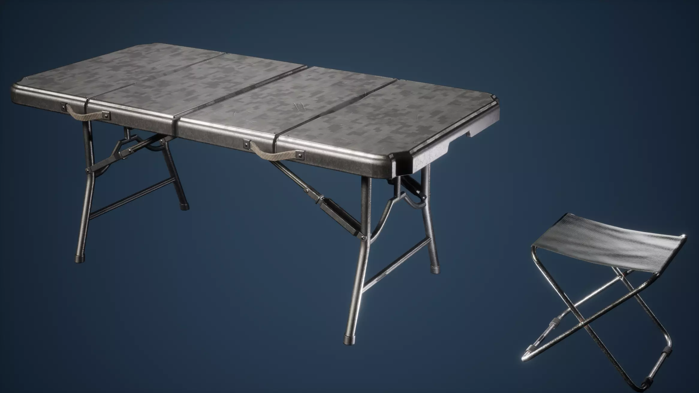 Foldable Chair and Table Game Ready Low-poly 3D model