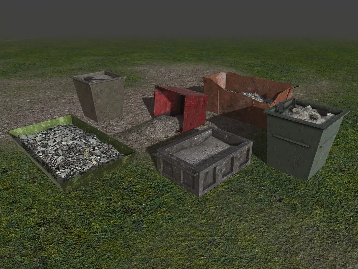 Garbage containers collection as props for scrapyard or some grungy atmosphere. Set of 6 garbage containers.