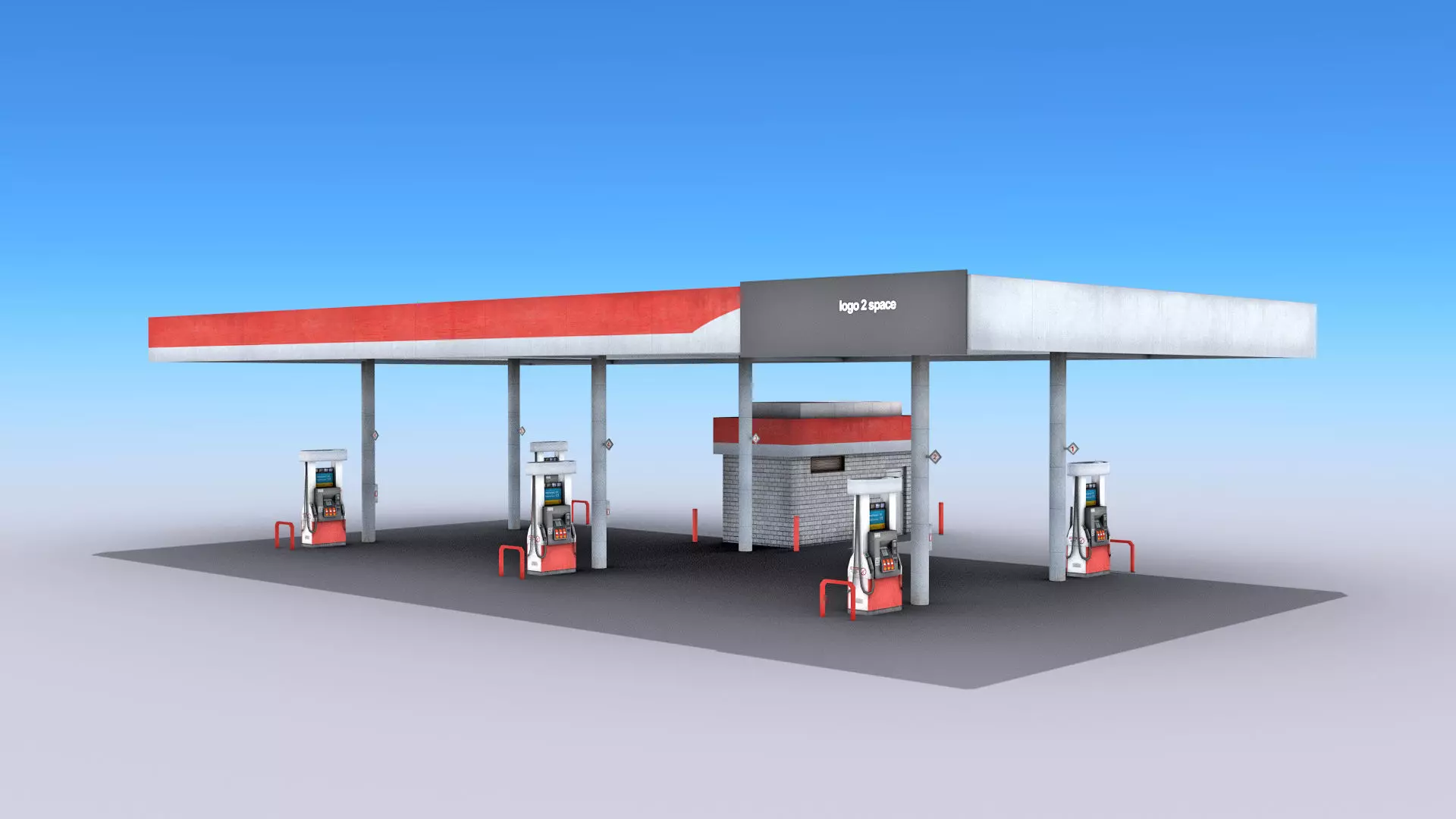 High-quality low-poly 3D model of Gas Station.