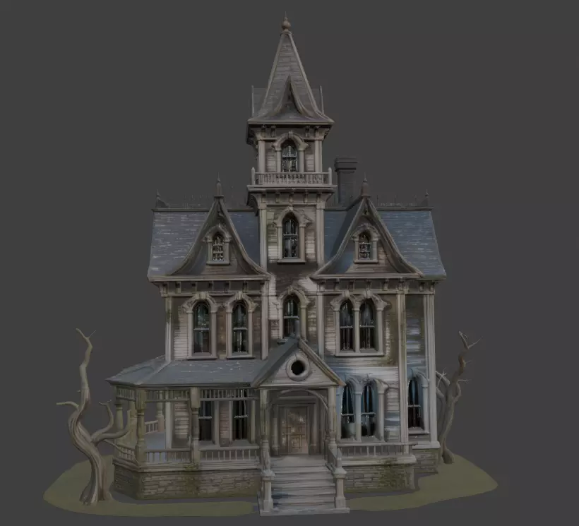 Step into the eerie charm of this highly detailed Haunted Victorian Mansion, perfect for horror games, Halloween scenes, cinematic renders, or architectural visualizations with a dark twist. This 3D model features a classic Victorian-style house with aged wooden siding, broken windows, boarded-up sections, creepy glowing green lights from within, a barren dead tree, intricate trim work, wrap-around porch, steep gabled roofs, and a towering turret.Fully PBR textured (4K textures included: Base Color, Normal, Roughness, Metallic, AO, Height). Clean quad topology, game-ready and optimized for real-time engines (Unreal Engine, Unity, Blender, etc.). Ideal for horror games, haunted house attractions, film projects, VR experiences, or any spooky environment.