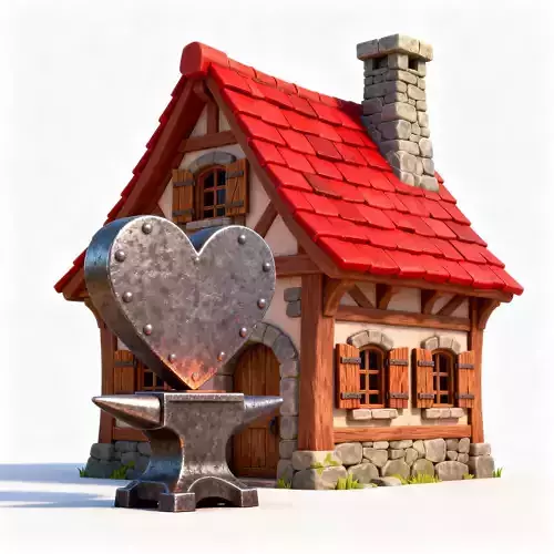 The Overall ConceptThis asset is the perfect hub for any fantasy village. It is a cozy, high-detail blacksmith shop featuring a unique heart-shaped anvil mascot, making it an ideal hero building for RPGs, simulation games, or medieval town builders.