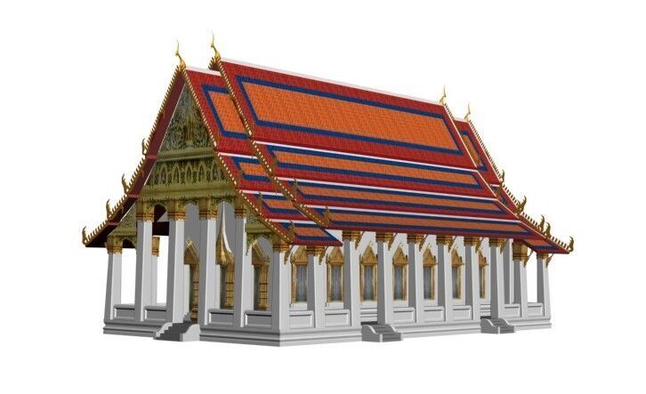 The Ho Phra Monthiantham (หอมณเฑียรธรรม) is a scripture hall on the north-eastern side of the temple. Its construction was paid for by the viceroy Maha Sura Singhanat, brother of Rama I. The hall is rectangular, surrounded on all sides with columns supporting a four-level roof. The entrance door is on the west side. The roof is covered in yellow and orange tiles. The pediment of the hall depicts the god Indra astride Airavata, the three-headed elephant. The inside of the hall is decorated with wood carvings of Hanuman, the symbol of the viceroy. The hall contains two mother-of-pearl inlay bookcases containing the Tripitaka. Today, the hall is also used for Buddhist sermons on Buddhist holy days. Formerly, the hall was used as a classroom for novice monks learning religious texts and as an exam room for monks.