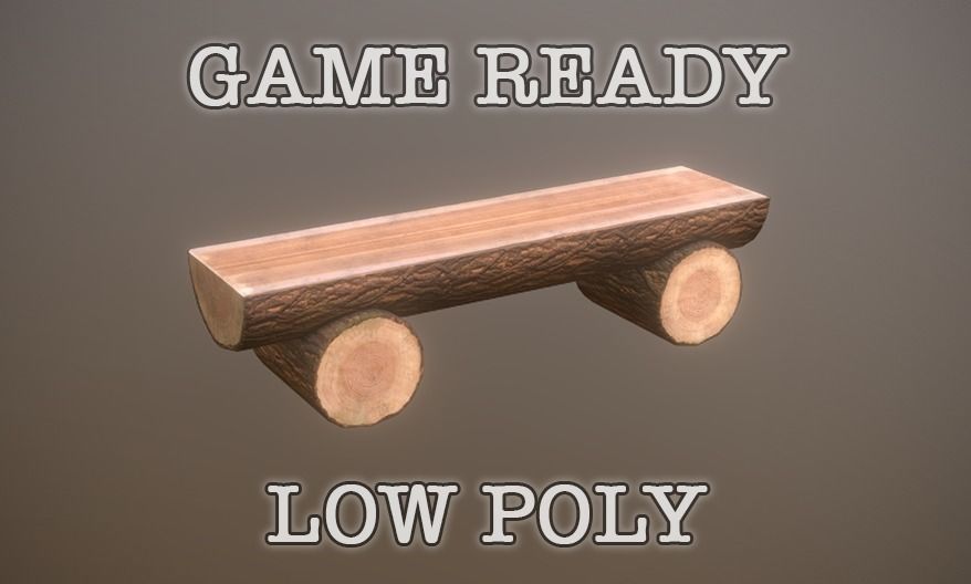 Log Bench low-poly game ready Low-poly 3D model