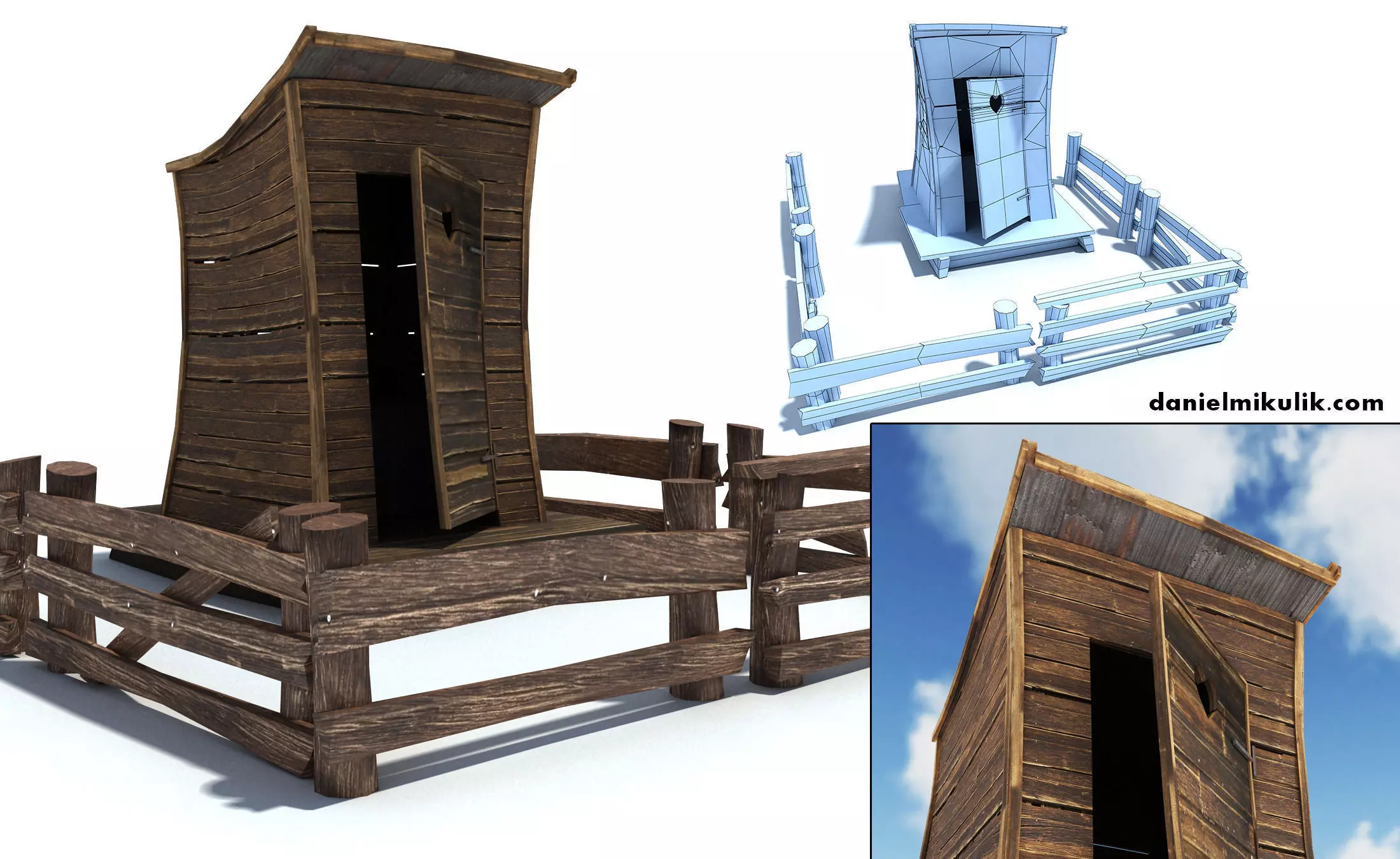 A 3D model of Old Wild West Toilet. Product's features: - resolution of textures.: wood: 6000x3000wood2: 900x600atlas: 4096x4096,fence 2048x1600