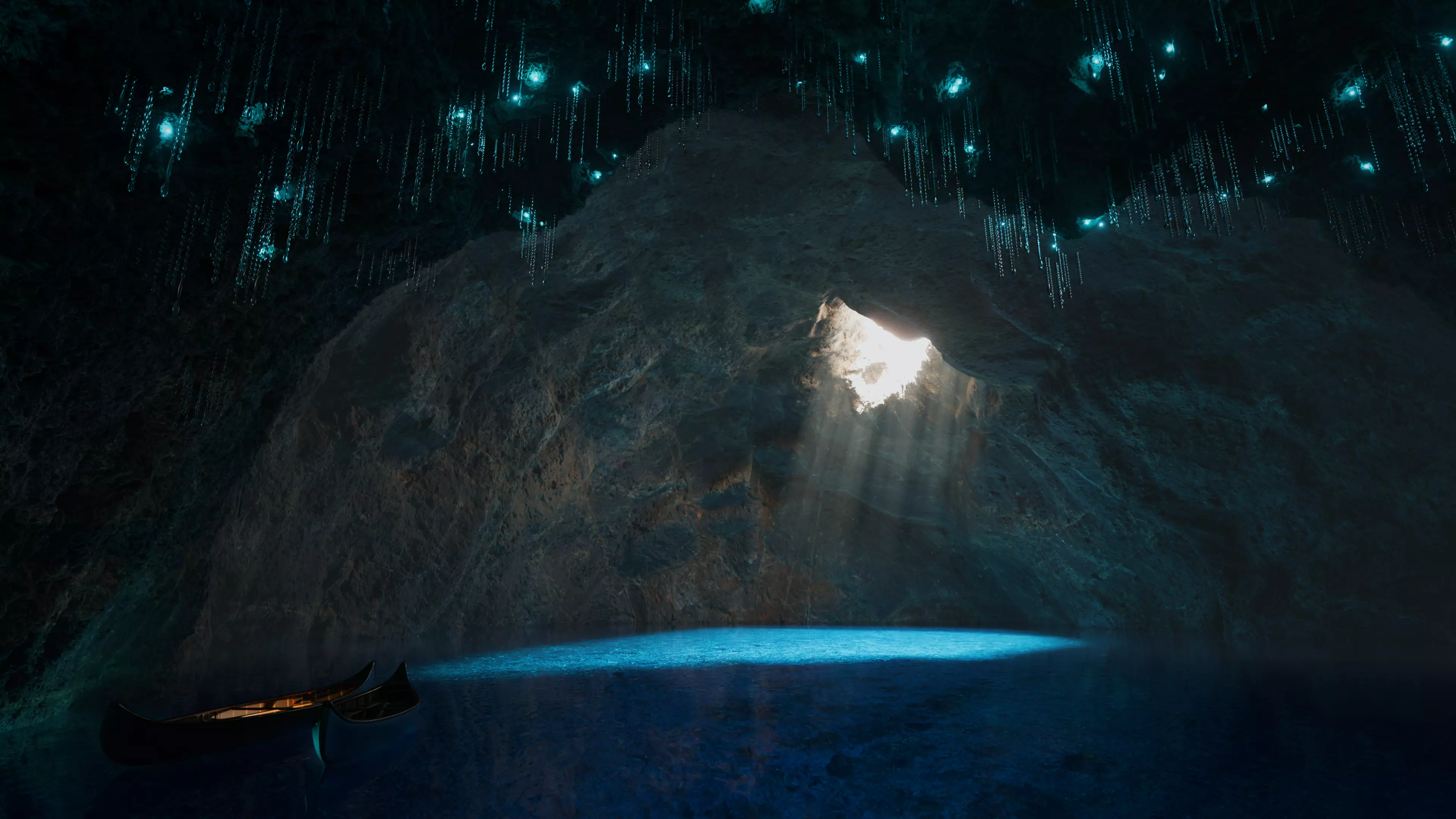 Step into a breathtaking cave environment crafted entirely in Blender. On one side, sunlight streams through a natural opening, illuminating the crystal‑blue water with a radiant glow. On the other, the darker recesses of the cave come alive with clusters of glow worms, casting a magical constellation of lights across the ceiling.This scene is fully optimized for Blender 5.0, making use of advanced features such as adaptive subdivision and the scatter on surface node to achieve rich detail throughout. Displacement textures bring depth and realism to both the rocky surfaces and the water, while the custom water shader employs volumetric scatter and absorption to capture the authentic look of light interacting with liquid.Whether you’re learning Blender’s latest tools or seeking a ready‑made environment for cinematic rendering, this cave offers a versatile foundation for your projects.