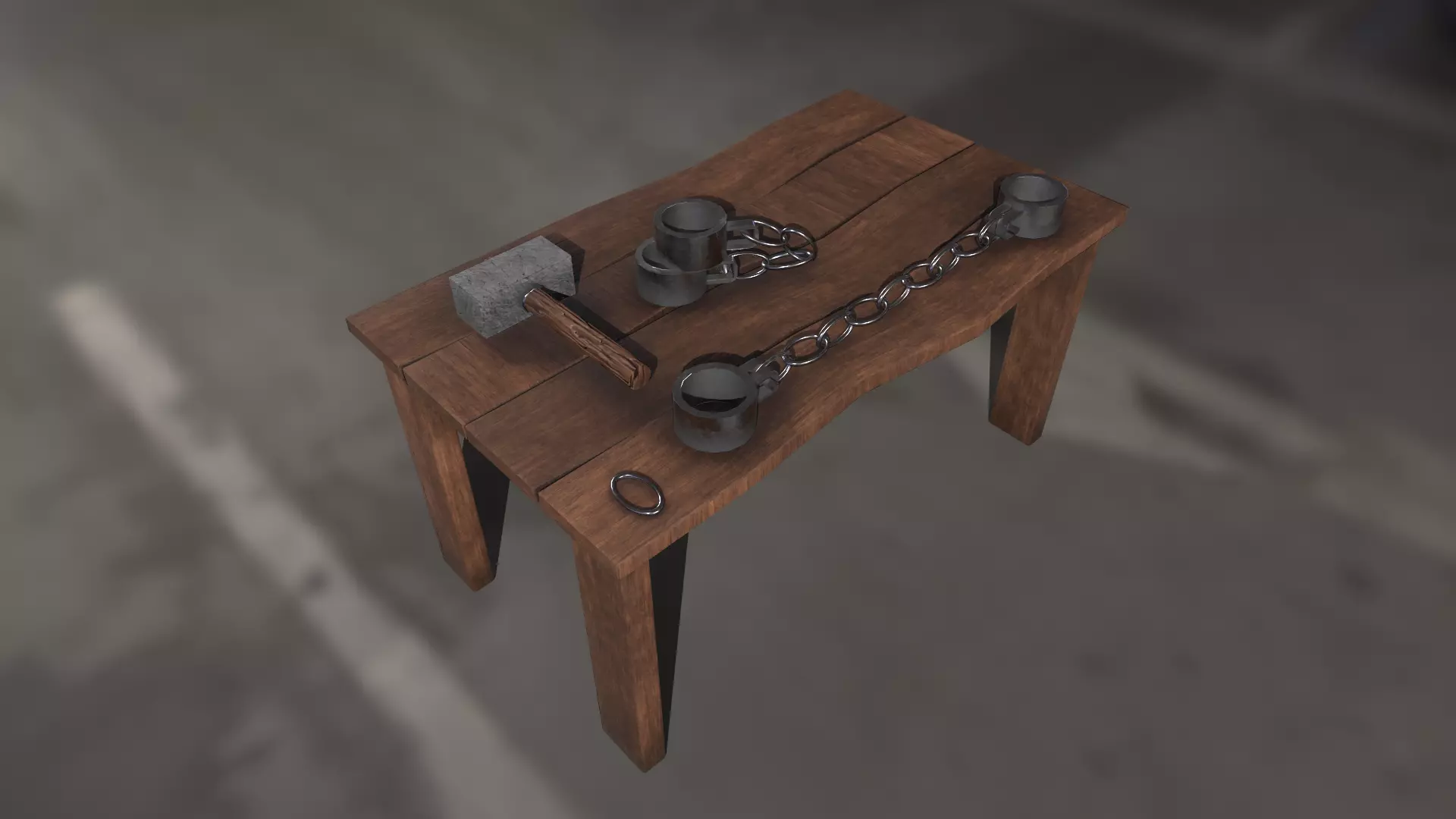 Medieval Table and Things - Table - Hammer - Handcuff pack Low-poly 3D model