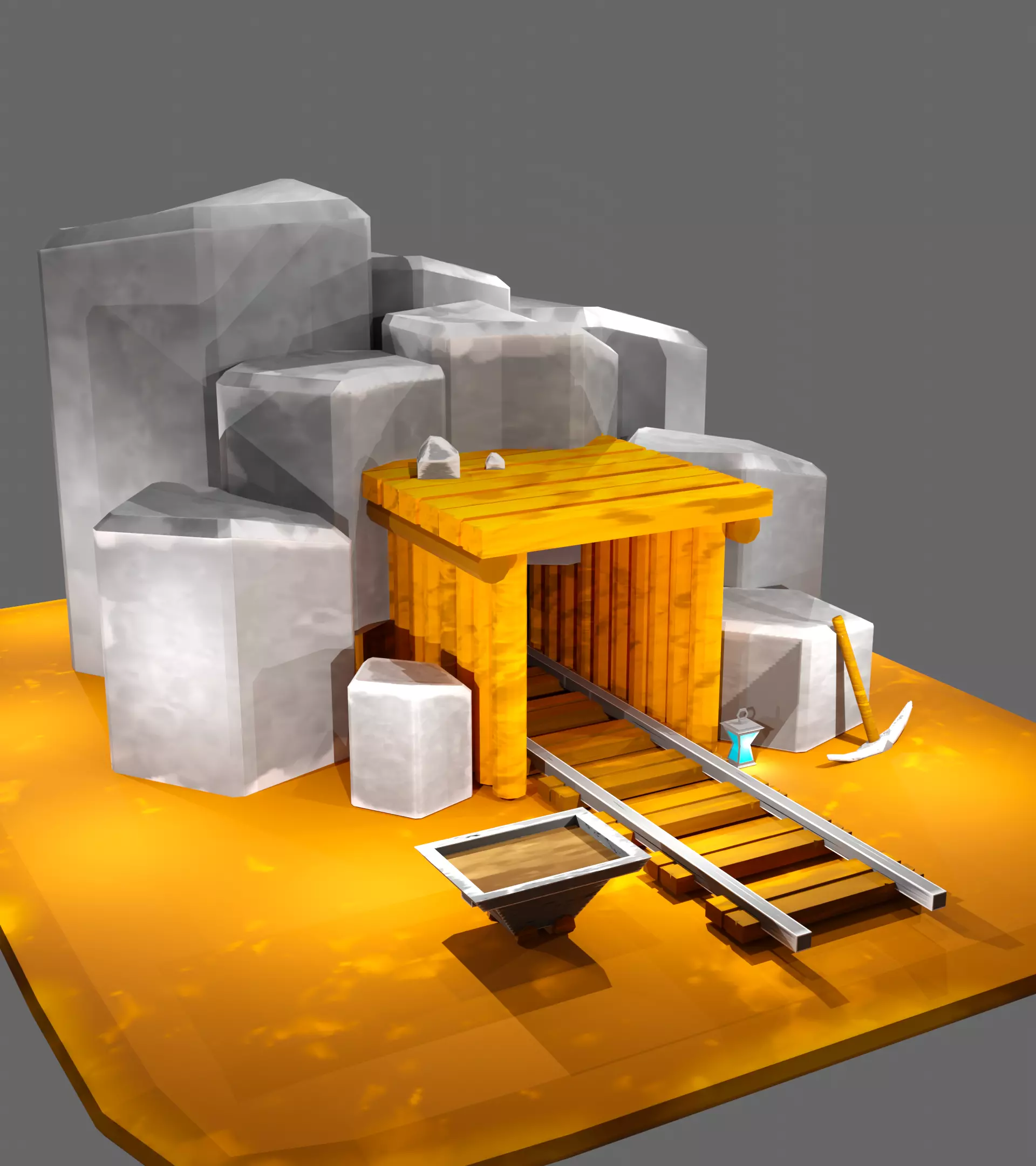Mine stylized low poly for game ready