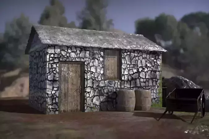 Old Water Mill Low-poly 3D model