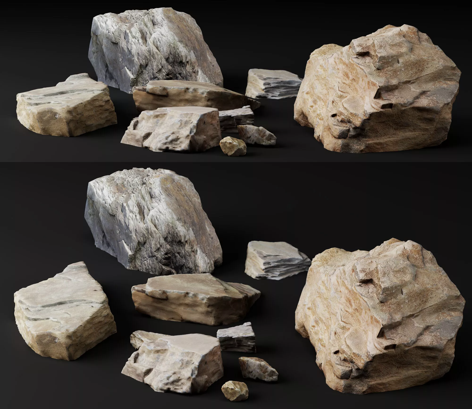 Professional high-quality 3D collection of Photogrammetry Scanned Desert Rocks and Cliff Boulders meticulously crafted for high-end landscape visualization AAA game environments and cinematic VFX projects. This comprehensive asset pack features 10 distinct professional scans capturing authentic geological erosion detailed sedimentary layers and realistic desert mineral colorations with ultra-high-fidelity PBR textures.