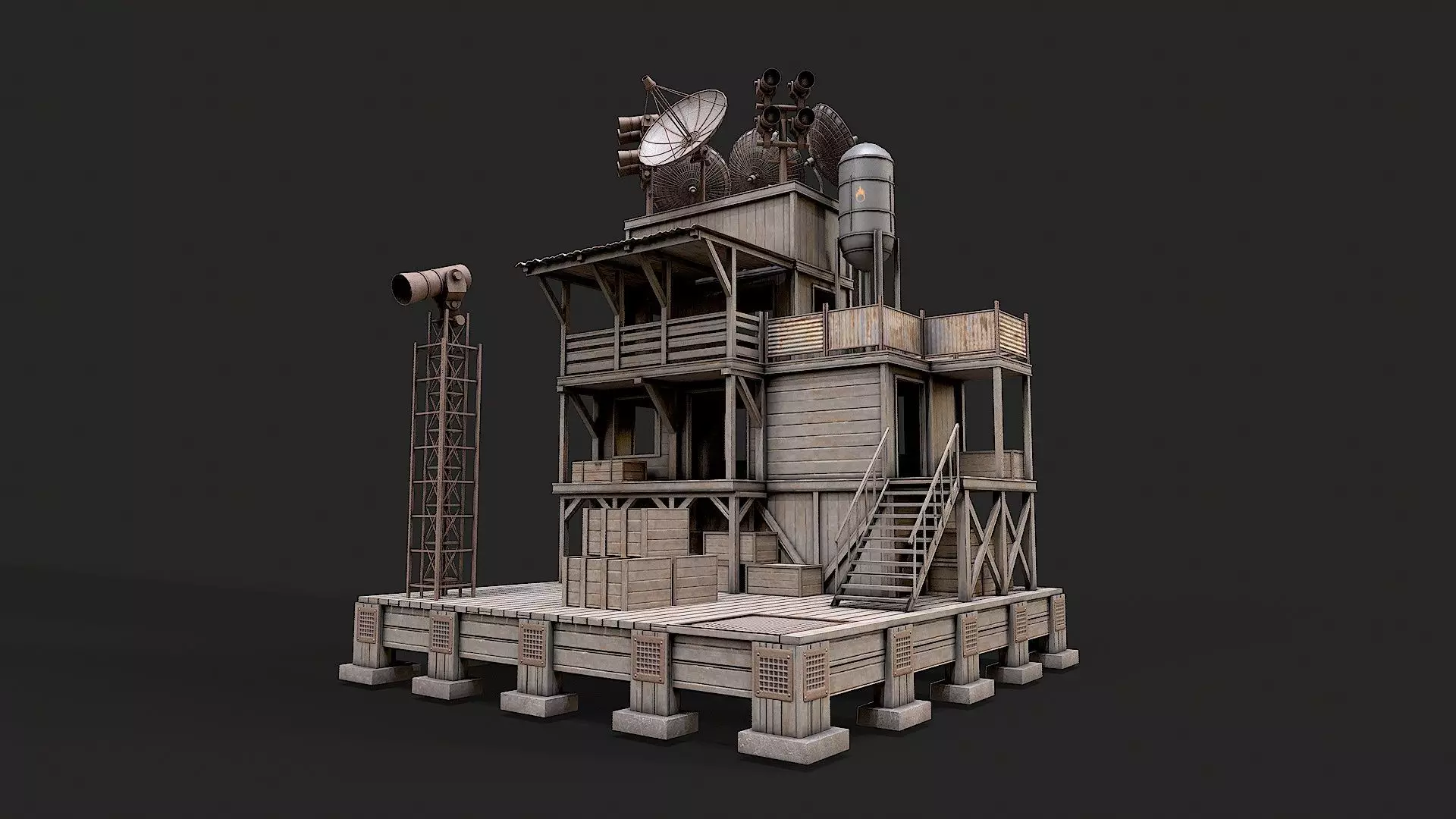 Post Apo Wooden Platform Structure 4 Low-poly 3D model