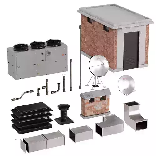 Rooftop Props SetRoof EntryDucts,PipesAntenna ChimenyChillerVray And Corona Max Version 2018Fbx And Obj