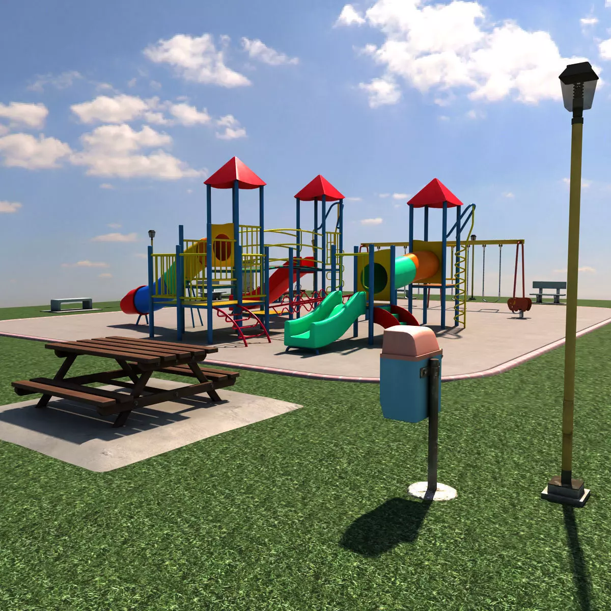 ( No turbosmooth modifier/Nurbs are applicated to this model )Geometry :This Scenic Playground model has a total of 35 geometry object, they are named logically, and assigned properly to their own Materials and Layer.