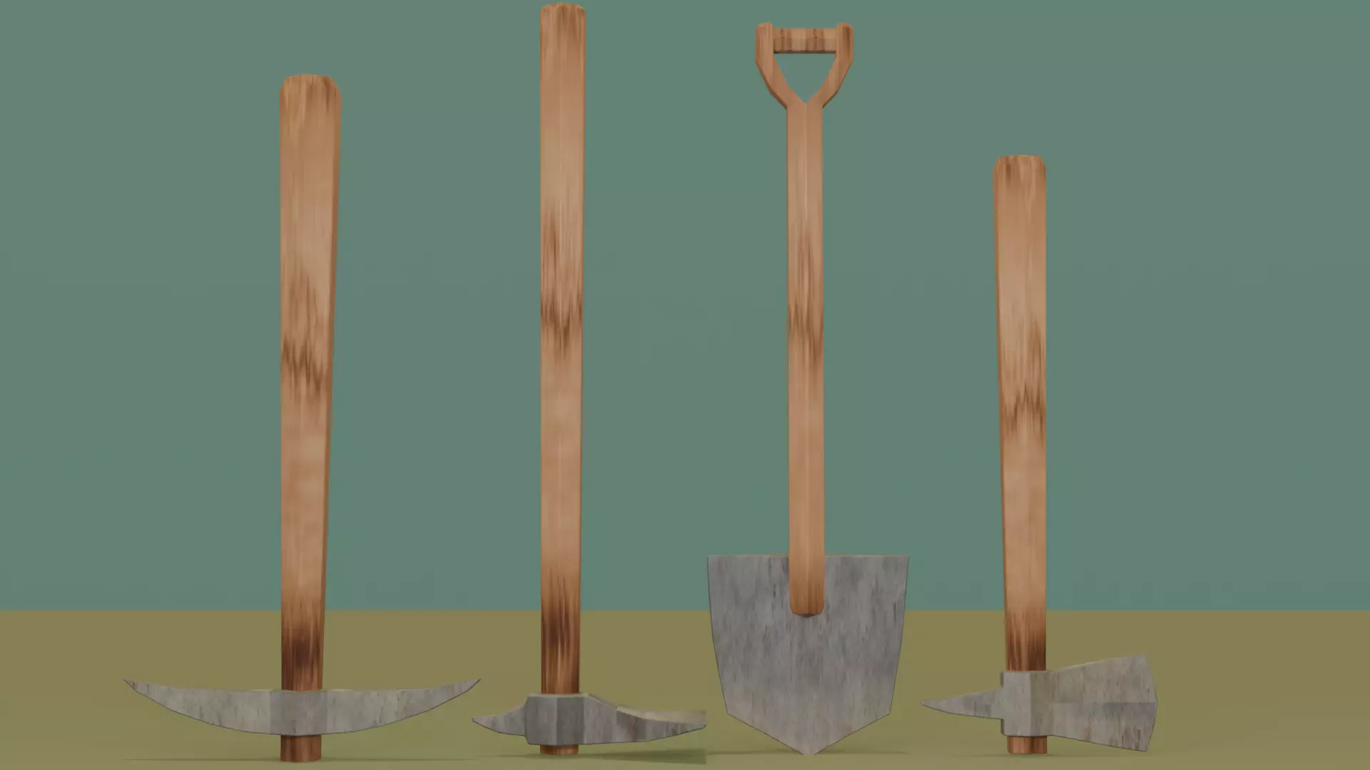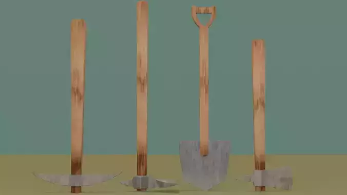 This pack includes a set of low-poly manual tools, ideal for games, animations, stylized visualizations, and educational projects. The kit contains models of pickaxes, a hoe, a shovel, and an axe, all designed to be simple, lightweight, and optimized for real-time performance.