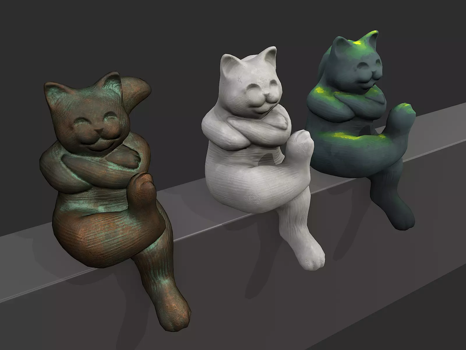 Sitting Cat Sculpture with Textures Low-poly 3D model