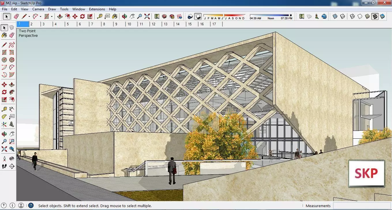 The model has material settings that define how surfaces look (color, shine, transparency, etc.).