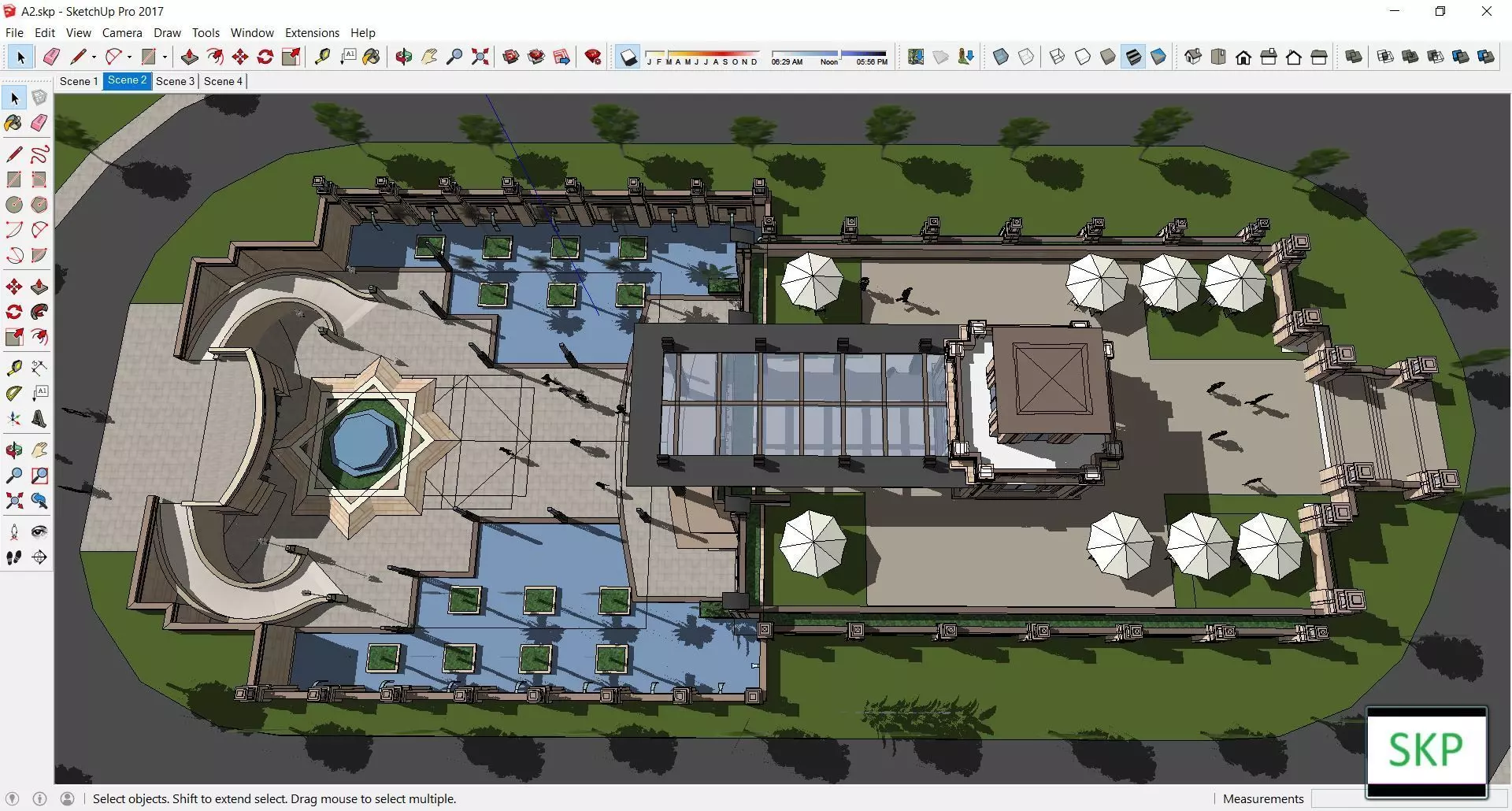 The model has material settings that define how surfaces look (color, shine, transparency, etc.).